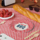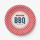 Celebrate the summer with a BBQ party. Impress your guests with this BBQ paper plate featuring a light orange tint centre bordered by a red gingham pattern. Check out matching items like invitation, stickers and stamps here https://www.zazzle.com/collections/gingham_bbq_party_collection-119000567419036723?rf=238364477188679314
