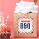 Celebrate the summer with a barbecue party. This BBQ sticker features a light orange tint centre bordered by a red gingham pattern. Check out matching items like invitation, stickers and stamps here https://www.zazzle.com/collections/gingham_bbq_party_collection-119000567419036723?rf=238364477188679314