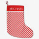 Modern red gingham pattern Christmas stocking. Simply add your name or monogram to this buffalo check, red and white chequered pattern Christmas gift stocking. If you need any help or matching products, please contact us through our store.