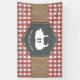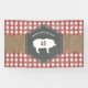 Weathered red gingham design with burlap strip with chalkboard geometric design with pig silhouette. Personalise the text.