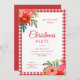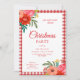 Red Gingham Floral Christmas Party Invitation