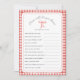 Editable game title and text questions for baby shower or bridal shower. Features a hand painted bow with gingham plaid red frame and backer.