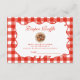 This playful red-gingham Baby Shower design brings all the cozy, nostalgic charm of a homemade family recipe. The hand-painted meatball illustration adds a fun, foodie twist, while the bold picnic-style border makes the whole layout feel warm, welcoming, and delightfully rustic. Perfect for moms-to-be who love cooking, comfort food themes, or hosting a shower with personality and heart. A standout choice for kitchen-themed celebrations and foodie families.