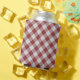 red gingham pattern can cooler. Gingham is a medium-weight balanced plain-woven fabric made from dyed cotton or cotton-blend yarn. It is made of carded, medium or fine yarns, where the colouring is on the warp yarns and always along the grain (weft). Gingham has no right or wrong side with respect to colour.