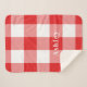 Red Gingham Pattern Monogram Name Sherpa Blanket