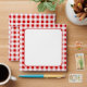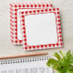 These cute invitations and coordinating items are printed with a red gingham pattern. Click "customise it" to change the white background to your favourite colour.