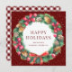 Red Gingham Plaid Holly Berries Wreath Business Holiday Card