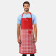 Red and white gingham checks with red straps and red trim at waist and bottom. Red heart at waist. Very cute country style. Text your name.