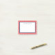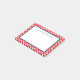 This red gingham Post-it® Notes pad features a red gingham pattern with a blue border and a white centre.