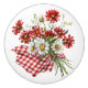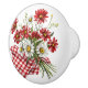 Red Gingham with Red and White Flower Bouquet Ceramic Knob