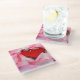 Red Glass Heart Rose Petals Coaster