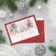 Red Glitter 2 Photo Script Merry Christmas. A touch of sparkle with this faux glitter border design with coordinating faux red glitter on the back. Simply replace the two sample photos with your own and personalise with your greeting and names at the bottom. Merry Christmas is in a stylish set script.