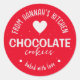 This Baked with Love sticker features a heart in red glitter background. It's perfect for labelling your baked goods.