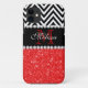 RED GLITTER BLACK CHEVRON MONOGRAMMED Case-Mate iPhone CASE