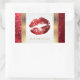 Red Glitter Lips and Elegant Gold Accents 2 Rectangular Sticker