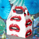 Red glossy lips on white background pattern design.