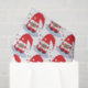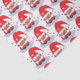 A cute Valentine's Day tissue paper with a little red gnome pattern holding a letter and surrounded by hearts .