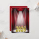 Gold 2025 text in the spotlight with red stage curtain for graduation party invitation.