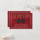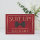 Use this "ring bearer proposal card" to ask your nephew, godson, or other family member to be a ring bearer at your wedding. It features a cute image of a black bow tie on a marbled red background and says: Suit Up! Your Services are Requested as Ring Bearer" There is a space to enter a special note asking "will you be my ring bearer?" as well as the wedding couple's names and wedding date. All fields are fully customisable.