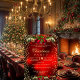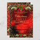 Red and gold Bells Holly Christmas Holiday Party Invitation. Elegant gold wreath and diamonds with red shimmer festive background. Please Note: All flat images!