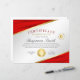 Shiny Red & Gold Professional Certificate Award. Includes Two Gold Medals.
