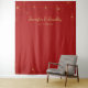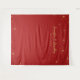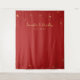 Tapestry wedding photo backdrop in red and gold cherry blossoms design.