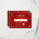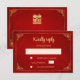 This traditional Chinese wedding RSVP card features a gold Chinese frame and a gold double happiness symbol on a shimmering red background. Matching invitation available.