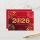 A beautiful Chinese New Year design featuring the number 0 of the year 2026 as a stylised fire horse medallion in gold glitter texture. Wish your family and friends good fortune and prosperity with this red and gold holiday postcard. You can change the greeting on the back of the card or leave it as it is.