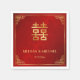 This Chinese wedding napkins features an gold double happiness symbol, gold Chinese frame and bride and groom names on a shimmering red background.