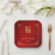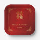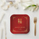 This Chinese wedding napkins features an gold double happiness symbol, gold Chinese frame and bride and groom names on a shimmering red background.