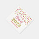 Customisable graduation napkins for class of 2023 with glamourous gold and red confetti pattern.