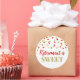 Retirement is sweet favour tag sticker with red and gold confetti pattern.