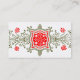 An elegant business card template with a vintage printers mark with a decorated shield and an etched floral design of daisies and curling leaves in red and golds, restored from an antique manuscript.