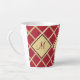 Red Gold Diamond Geometric Pattern Monogram Latte Mug