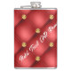 Flasks with Golden Diamond Tufted Leather Custom Text Name Red Gold Personalised Flask Gift - Choose / Add Your Favourite Text - Name OR Remove text - Make Your Special Flask Gift - Resize and move or remove and add text / elements with Customisation tool. Choose your favourite Font / Size / Colour ! Design by MIGNED. Please see my other projects / designs and paintings. You can also transfer my designs to more than 1000 Zazzle products.