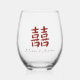 Red Gold Double Happiness Chinese Wedding Stemless Wine Glass