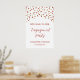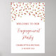 Custom text engagement party welcome poster with red and gold confetti.