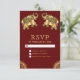 Elegant RSVP card featuring beautifully decorated elephants against a dark red background.