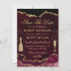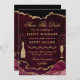 Modern Burgundy Red and Gold Faux Glitter Agate and Marble design with gold champagne bottle and glass diamond clipart