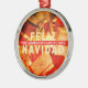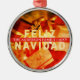 Red Gold Feliz Navidad Modern Elegant Christmas Metal Ornament