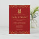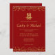 Red gold floral border Chinese wedding double xi Invitation