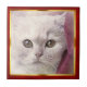 Red & Gold Framed Abstract Cat Print Ceramic Tile