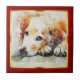 Red & Gold Framed Abstract Dog Print Ceramic Tile