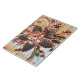 Vivid red jewels on a gold pin with a print background notepad crafting papers