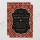 Red & Gold Heart Damask Valentine's Dinner Party Invitation