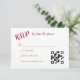 This wedding response card matches the Red Gold Hearts Christian Cross Wedding Invitations and other products in our store. It has your custom text in red light gold on a white background on the front. All the text is customisable, and there is a template field for your own QR website code, which you may delete if not needed. The back of the card has an abstract gradient red background with two interlocking gold hearts, matching the invitation. Classy, memorable, and elegant!