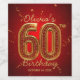 Celebrate a milestone birthday in spectacular style with this glamorous wine label. This eye-catching design features the number '60' rendered in a dazzling, three-dimensional gold metallic effect, lavishly encrusted with rows of sparkling ruby red gemstones or jewels. Set against a rich deep red background adorned with shimmering gold confetti and streaming ribbons, this label immediately sets a luxurious, elegant tone for any milestone party. Perfect for a mother, grandmother, or any fabulous lady turning sixty.