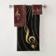Red & Gold Music Towels - The Treble Clef: - Music Notes Golden Decor. Metallic Gold and black bath towel set. Golden music note themed. Perfect gift for those that love music, You can make your own background colours to match your home decor or music themes.