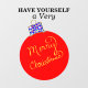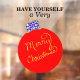 Merry Christmas is hand-written in gold colour script. Festive red round ornament ball with red, blue, green, yellow, orange, silver, white polka dot accents. Original Artwork by TamiraZDesigns.