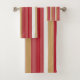 Add a chic and cheerful flair to your Christmas celebrations with this stunning pinstriped pattern. Featuring thin, vertical stripes that vary in width and spacing to create a sophisticated Christmas design. In traditional red, gold, and white, this bath towel design brings a festive and elegant look to any bathroom setting. The vibrant red stripes capture the joyful spirit of the season, while the shimmering gold adds a luxurious touch that has a timeless appeal. Search ID1009 to see other products and patterns in this colour scheme.